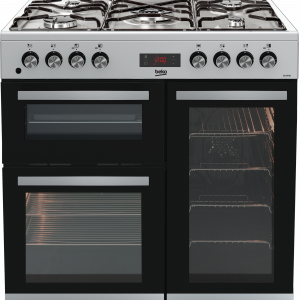 Beko KDVF90X Stainless Steel 90cm Double Oven Range Cooker with 5 Burner Gas Hob