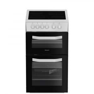Hotpoint HTE5VCW White 50cm Freestanding Electric Twin Cooker with Ceramic Hob