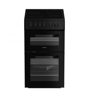 Hotpoint HTE5VCB Black 50cm Freestanding Electric Twin Cooker with Ceramic Hob